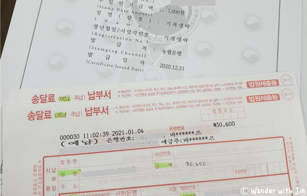 You also need to fill in the 송달료 with your name, how much you’ve paid, the name of the bank, bank account, and holder name because you’ll get a refund once your change of name has been done.