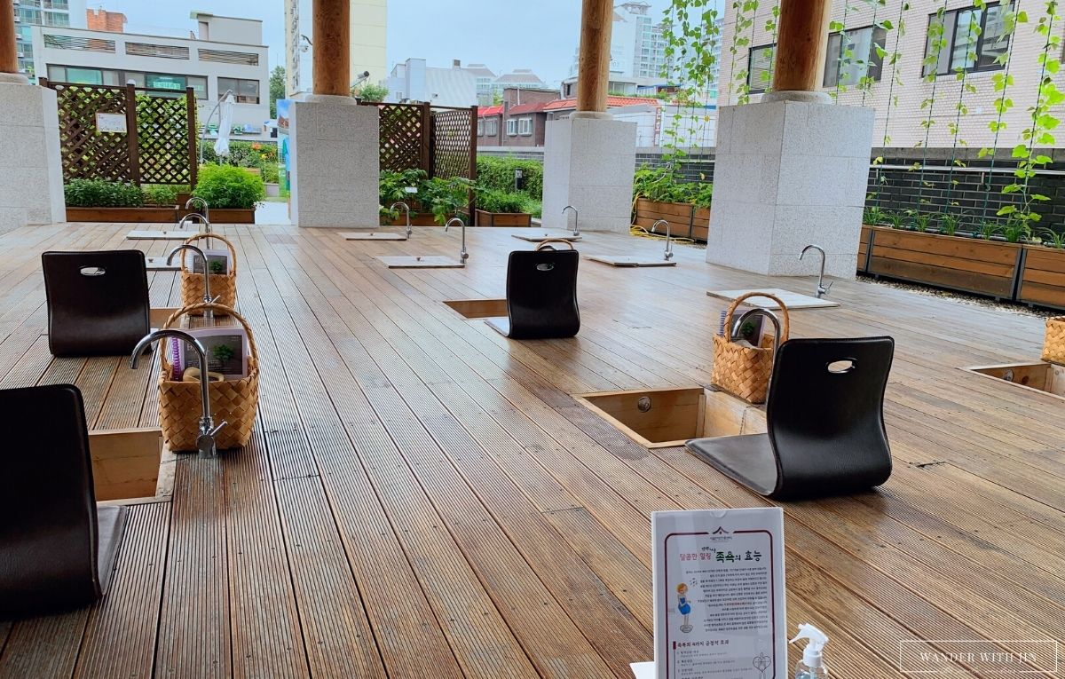 The footbath experience feeling is extraordinary. Immersing your feet in warm water and medicinal herbs while watching a nice view of the sky under the traditional house is such a great K-healing. It’s not just healing your body but also your heart and mind.